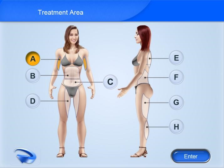 Underarm, Back, Flank, Calf, Upper abdomen, Lower abdomen, Outer thigh, Inner thigh