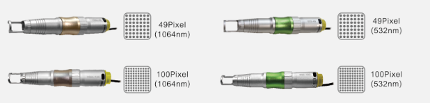 The 585 nm dye lens handpiece is optimized for efficient targeting of sky-blue pigment inks, while the 650 nm dye lens handpiece is specifically designed to effectively address green pigment inks, enabling more precise and selective pigment clearance across challenging tattoo colors.
