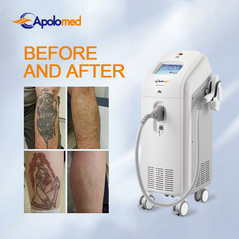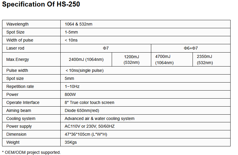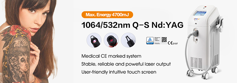 TUV-approved high-power Q-switch ND YAG laser, with 1060nm tip / 532 KTP / beam expander lens for different colors tattoo removal, epidermal pigment and nail fungus treatment.