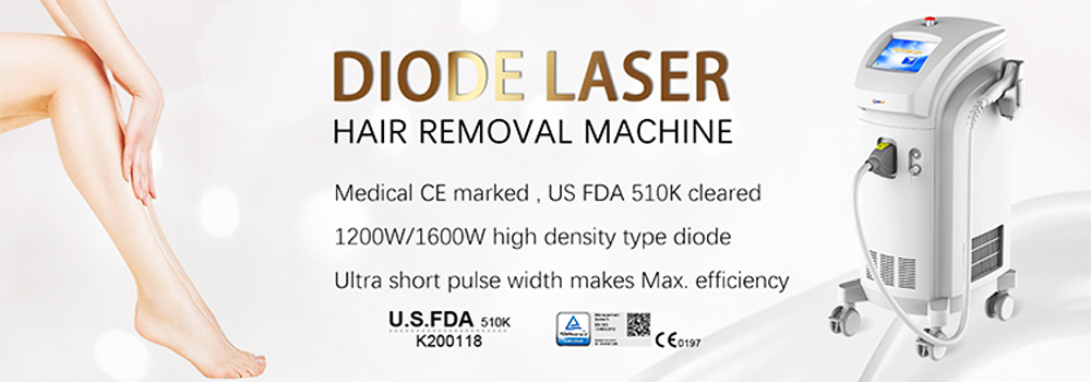 The high density diode laser using exclusive ultra short pulse technology, it enables the delivery of ultra short pulses (1ms) at 1600W high peak power with high fluence in large spot, which guarantee effective, shorten treatment session and residual hair.